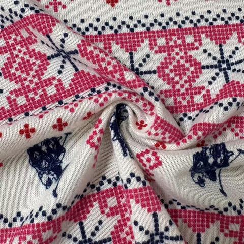 Pembe geri dönüşümlü Polyester Hacci baskı kumaş hafif Jersey nefes yumuşak etek giyim için